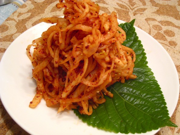 Salad yang berbahan dasar lobak ini sangat bagus untuk kesehatan jika kamu konsumsi. salad ini biasanya dijadikan makanan pendamping untuk makan. Manfata mengonsumsi salad lobak pedas ini adalah untuk melancarkan metabolisme, dan membuat kulit menjadi kenyal dan lebih cerah.