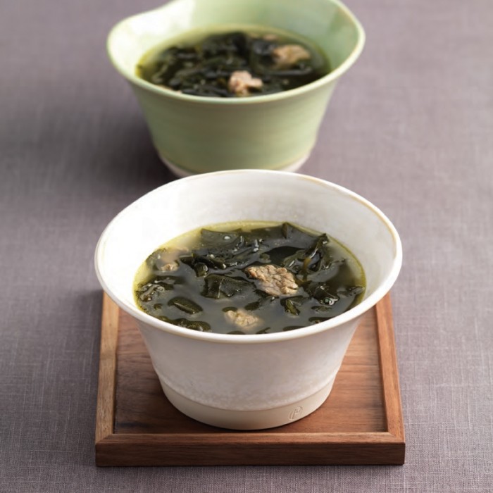 Makanan Korea selanjutnya yang memiliki bnyak amnfata untuk kesehatan adalah sup rumput laut. Biasanya sup rumput laut dihidangkan saat ulangtahun dan juga disajikan untuk wanita yang baru saja melahirkan. Hal ini karena sup rumput laut dapat membuat ASI lancar dan membantu mempercepat penyembuhan karena kandungan iodinnya yang tinggi. biasanya sup rumput laut dimasak dengan tulang sapi agar semakin lezat.