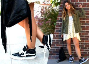 Ini agak terbalik, kamu mengubah gaya preppy menjadi athletic. Memakai dress dan sepatu, kamu juga menggabungkannya dengan jaket dan tas trendi.