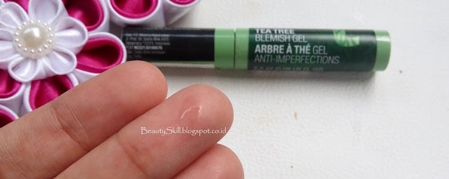Tekstur dari Blemish Gel ini menurutku malah bukan seperti gel, lebih mirip seperti air, warnanya bening, dan teksturnya ini juga gak begitu lengket.. Untuk wanginya agak menyengat diawal, seperti bau alkohol + jamu tapi semakin lama bau itu bakalan hilang.. Jadi gak terlalu berpengaruh sih buat aku..hehe