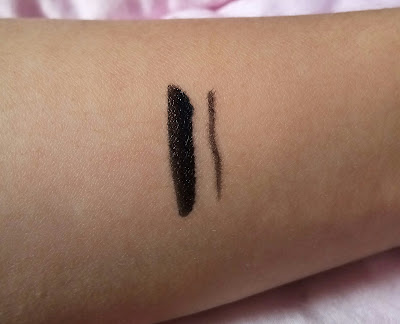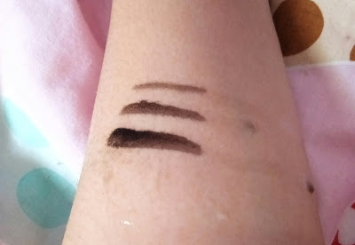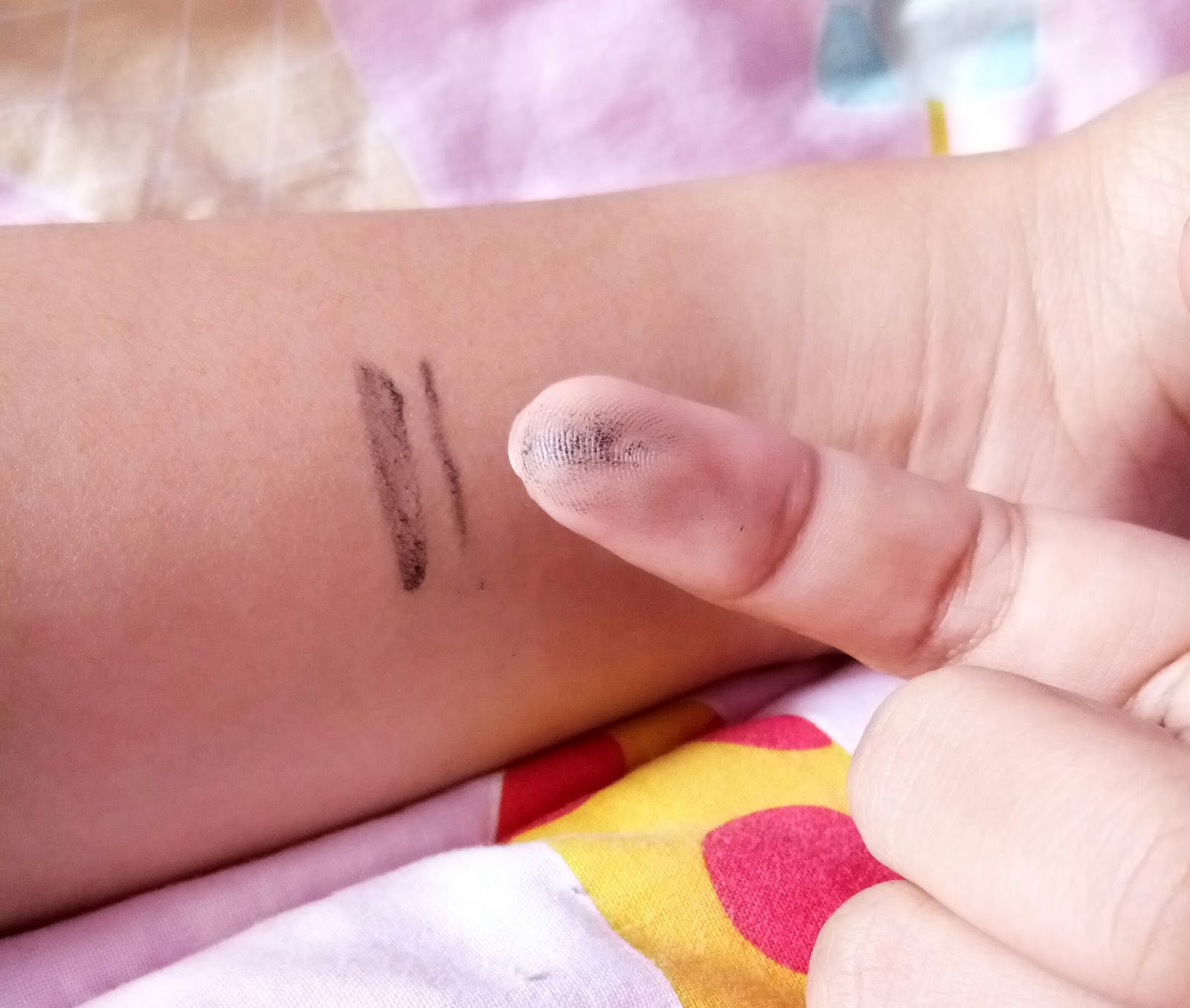 warnanya kurang hitam, dan kalau ngga sengaja pakai aplikatornya miring hasil swatch-nya jadi luber |