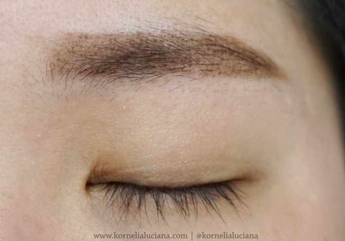 Anehnya kalo untuk bagian alis yang ada rambutnya, warna brow pomade ini jadi terlihat lebih gelap. Jadi bisa aku simpulkan kalo brow pomade ini hasilnya tergantung apakah bulu alis kita lebat atau botak. Kalo alis kita botak, maka hasil dari pomade ini lebih soft dan kalo ditimpa lagi setelah pomadenya kering malah jadi kayak kehapus gitu warnanya.