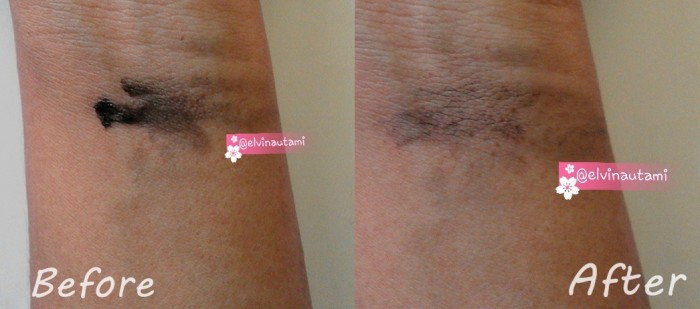 Hasil dari pemakaian maskara ini juga cepat kering, waterproof, ringan berasa gak pakai maskara. Untuk membersihkannya bisa ambil cotton bud dan colek ujungnya ke Petroleum Jelly lalu oleskan ke bagian bulu mata, setelahnya tinggal digosok dengan kapas wajah. Sedangkan bila hanya cuci muka biasa saja, bulu mata masih tetap terlihat pakai maskara namun asiknya lagi meski sudah kena air tapi gak ada bekas serbuknya berjatuhan serta gak belepotan ataupun luntur, tapi kalau dipegang dengan jari maka serbuknya akan menempel.