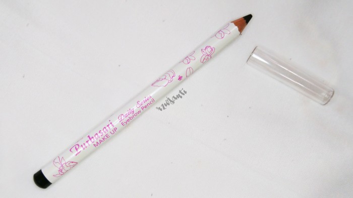 Pensilnya sendiri bentuk yang diraut ya, bukan yang automatic. Ukurannya juga lumayan panjang. Warnanya putih dengan logo pink khas dari produk – produk makeup nya Purbasari. Pensil alisnya dilengkapi tutup plastik dan di bagian ujungnya ada penanda warnanya. Pilihan warnanya ada 2, Coklat dan Hitam. Aku pilih yang Hitam karena emang lebih suka alis yang warnanya kehitaman daripada yang coklat.