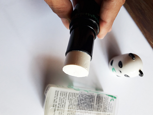 Duh, siapa sih yang gak tergoda dengan packaging super duper cute seperti ini. With panda casing dan berbentuk stick kecil, jadi travel friendly banget bisa dibawa kemana-mana. Kemasannya juga simple, dari plastic tebal untuk casing stick pandanya dan hanya dibungkus mika bening dengan keterangan bahasa korea dan inggris. Diujung stick eyebase ini ada tutup plastik bening yang membuat agar produk nempel dengan casing langsung.