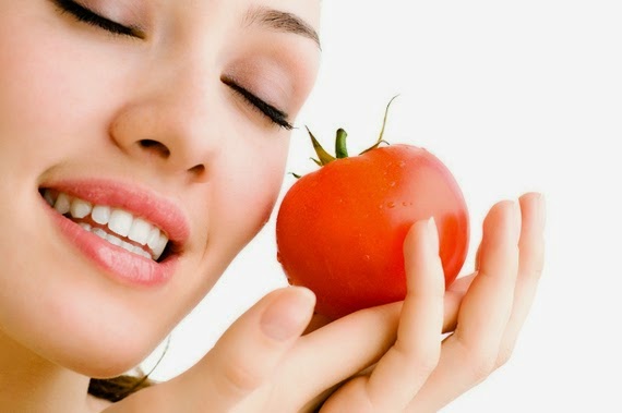 Tomat kaya akan likopen, suatu enzim yang mengendurkan lapisan kulit mati dan membantu menghilangkan flek hitam yang disebabkan oleh jerawat. Buah ini juga mengandung antioksidan yang membantu mengembalikan kelembaban alami kulit dengan menghilangkan radikal bebas yang akhirnya menyebabkan kerusakan sel kulit. Cara terbaik adalah mengiris tomat dan mengoleskannya langsung di wajah kamu, biarkan selama 20 menit kemudian cuci dengan air dingin.